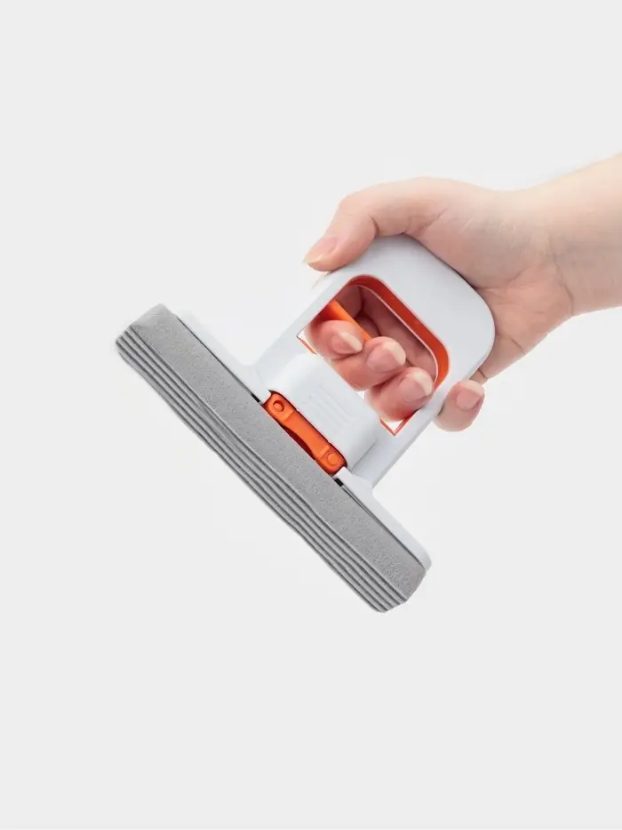Мини швабра с насадкой ПВА с отжимом, насадка 14х3, серо-оранжевая