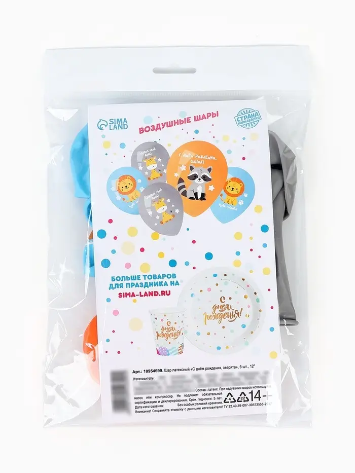 Воздушный шар латексный 12" «С днём рождения. Зверята», набор 5 шт.