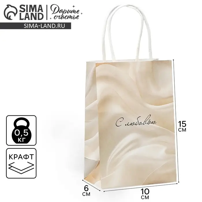Пакет подарочный крафтовый, упаковка, «С любовью», 15 х 10 х 6 см