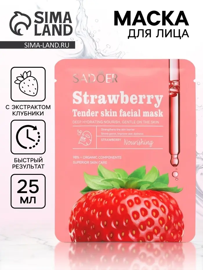 Экстракт клубники богат витаминами, антиоксидантами и натуральными увлажняющими веществами, которые способствуют смягчению кожи, повышению её тонуса и улучшению цвета лица. Регулярное использование маски помогает поддерживать водный баланс кожи и придаёт ей более здоровый, ухоженный вид.
