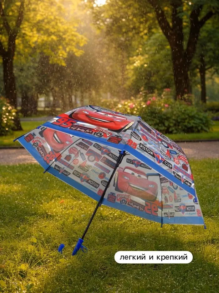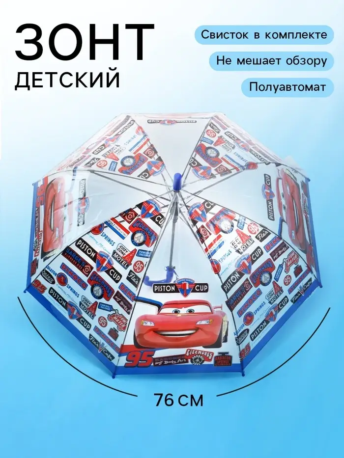Прозрачный купол обеспечивает хорошую видимость в дождь. Ручка из прочного пластика с удобным хватом. На куполе — яркий принт с героями любимого мультфильма. Подходит для детей от 3 лет.
