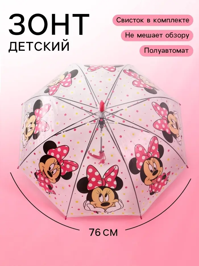 Зонт детский прозрачный купол «Минни Маус», d=76 см