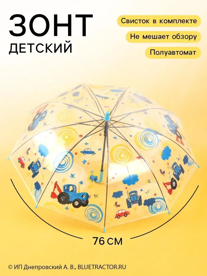 Зонт детский прозрачный купол «Синий трактор» d=76 см