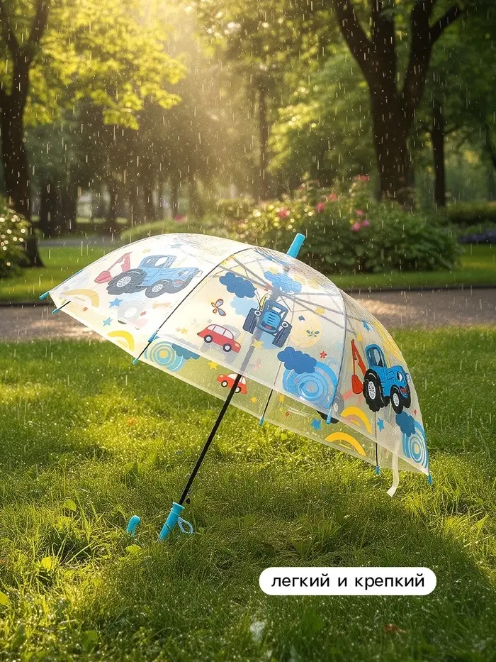 Прозрачный купол обеспечивает хорошую видимость в дождь. Ручка из прочного пластика с удобным хватом. На куполе — яркий принт с героями любимого мультфильма. Подходит для детей от 3 лет.