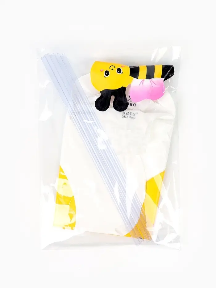 Воздушный шар полимерный 16" "Ромашка белая с пчелкой ", с палочкой, набор 5 штук