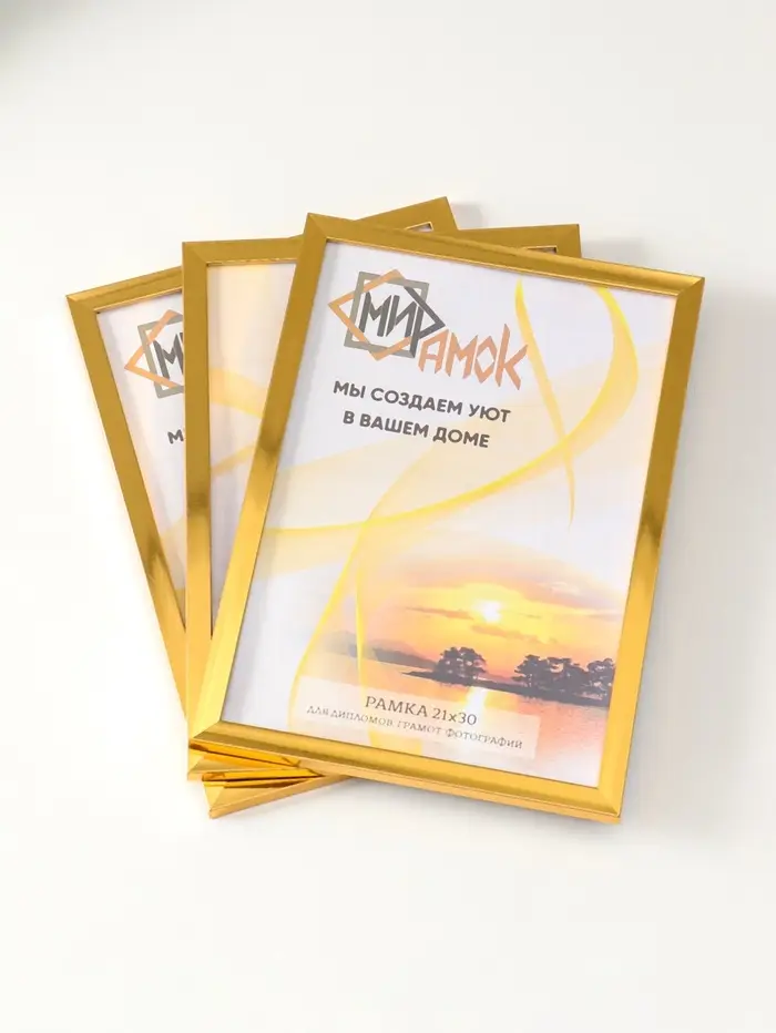 Фоторамка для фото " Lumo" 21х30 см, набор 3 шт, (пластиковый экран), золото