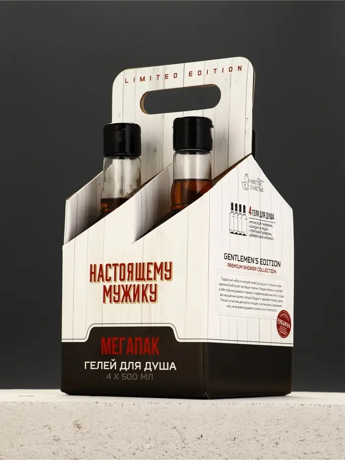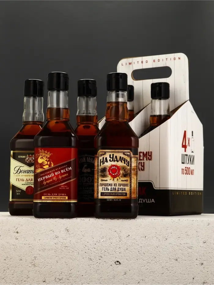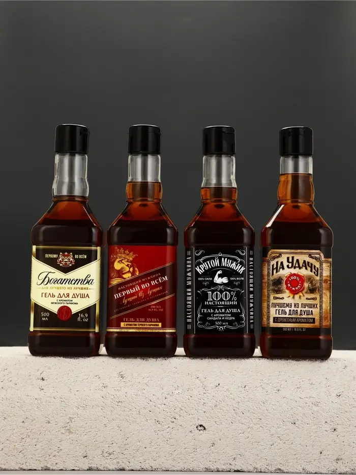 Набор "Настоящему мужику", 4 геля для душа во флаконах виски по 500 мл