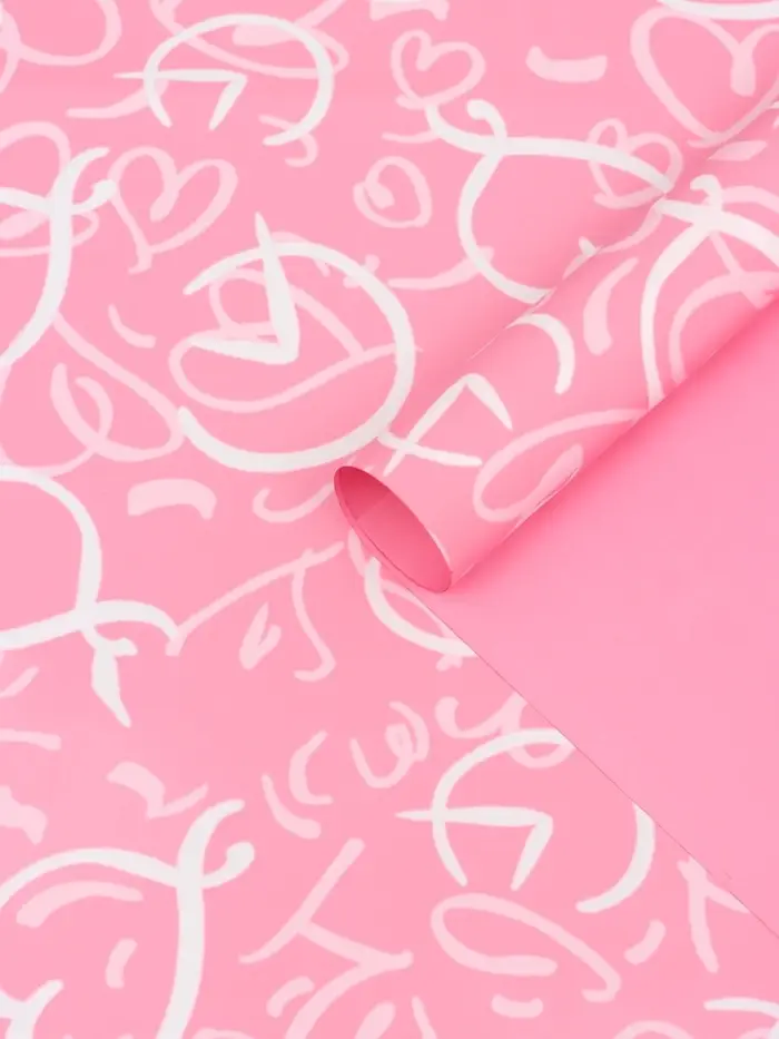 Пленка для цветов, "Сердца", розовая, 57х57 см