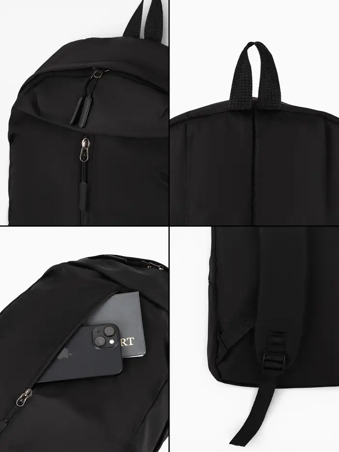 Рюкзак складной на молнии, с сетчатыми карманами, размер 31×11×39 см, чёрный