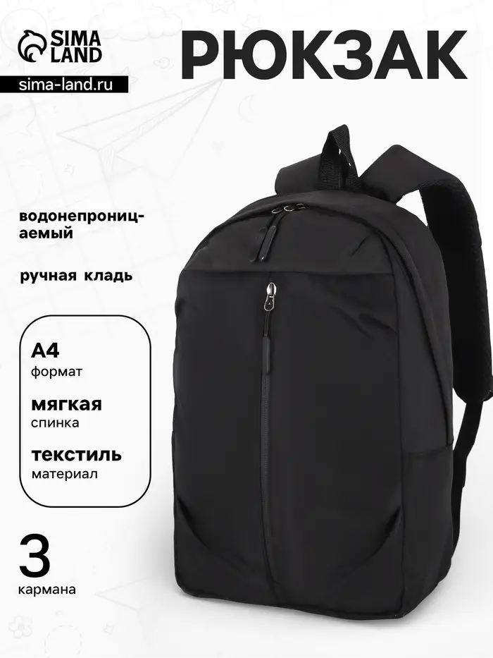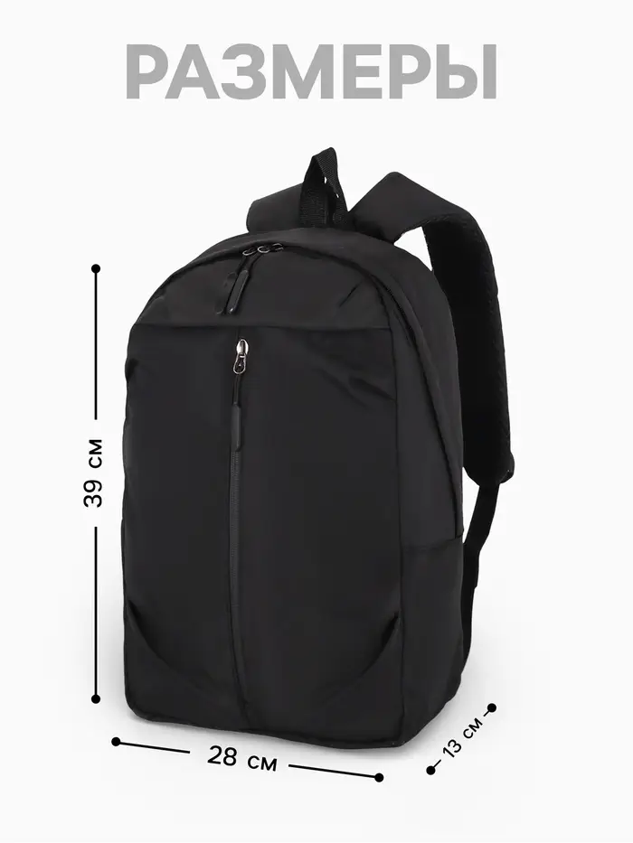 Рюкзак школьный, однотонный, 1 отделение, 3 кармана, 28×13×39 см, чёрный