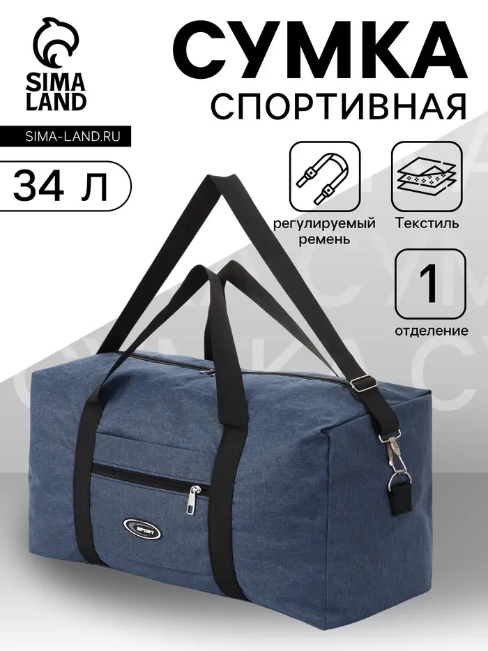 Сумка спортивная, 1 карман, длинный ремень, 53×23.5×28.5 см, синяя