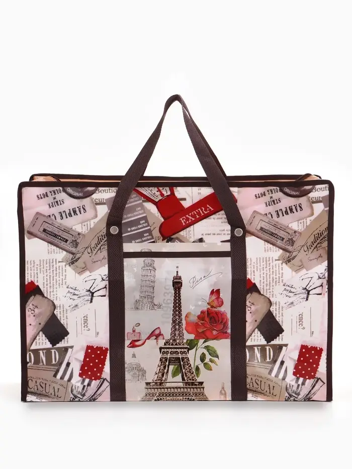 Сумка хозяйственная «Париж», на молнии, 60×20×43 см, наружный карман, разноцветная