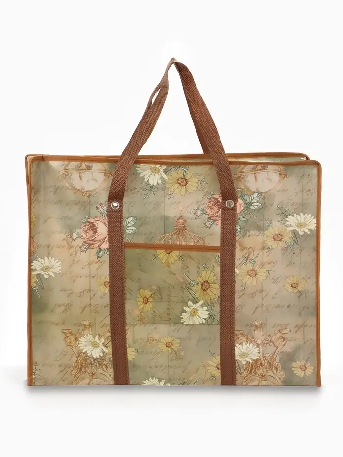 Эта коричневая хозяйственная сумка на молнии — ваш надёжный помощник для больших закупок и поездок на рынок. Её просторное основное отделение легко вмещает всё необходимое, а практичный наружный карман даёт быстрый доступ к мелочам вроде кошелька или ключей. Форма и размеры делают её устойчивой и удобной для переноски даже в заполненном состоянии.