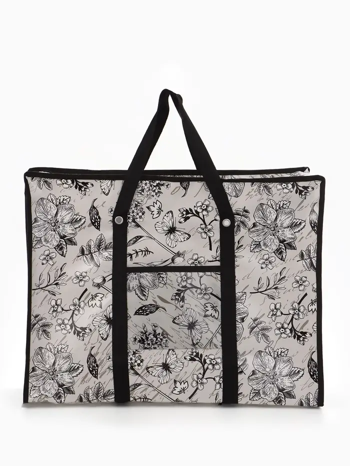 Эта серая хозяйственная сумка на молнии — ваш надёжный помощник для походов за продуктами, поездок на дачу или организации порядка дома. Её продуманный размер вмещает всё необходимое, а стильный дизайн с принтом "цветы и бабочки" добавляет образу лёгкости. Наружный карман даёт быстрый доступ к мелочам, которые всегда должны быть под рукой.