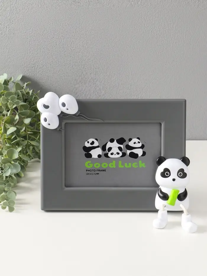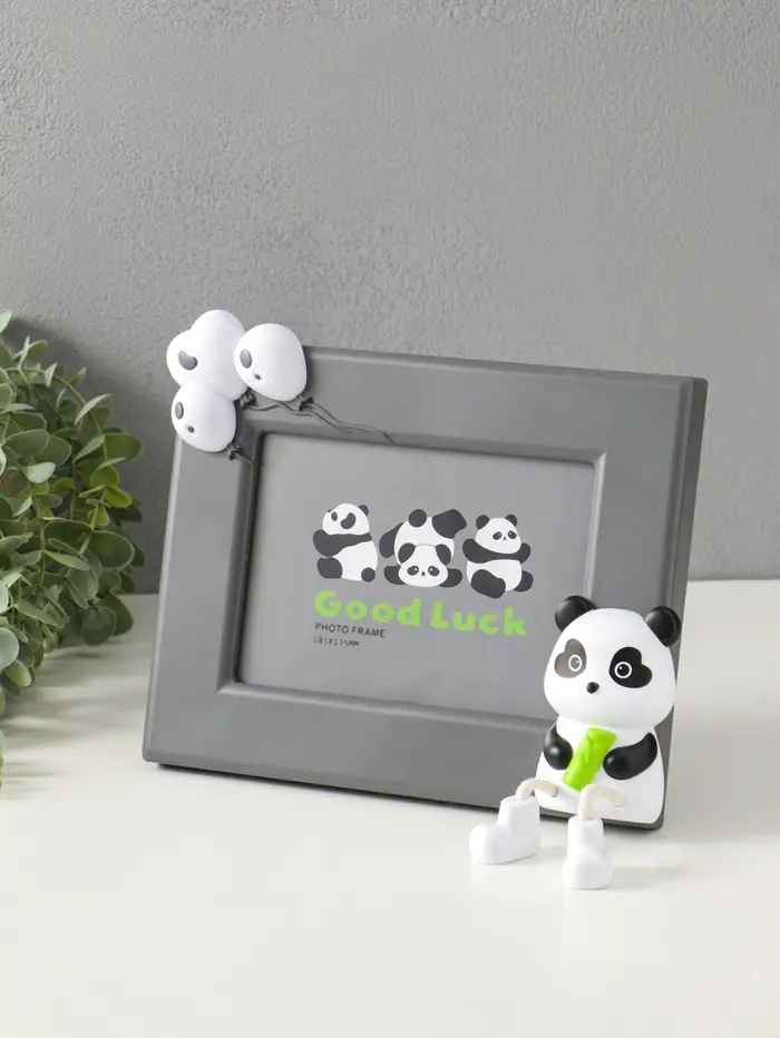 Фоторамка пластик 13х18 см "Пандочка с бамбуком" серый, горизонталь 3,5х24,5х19 см