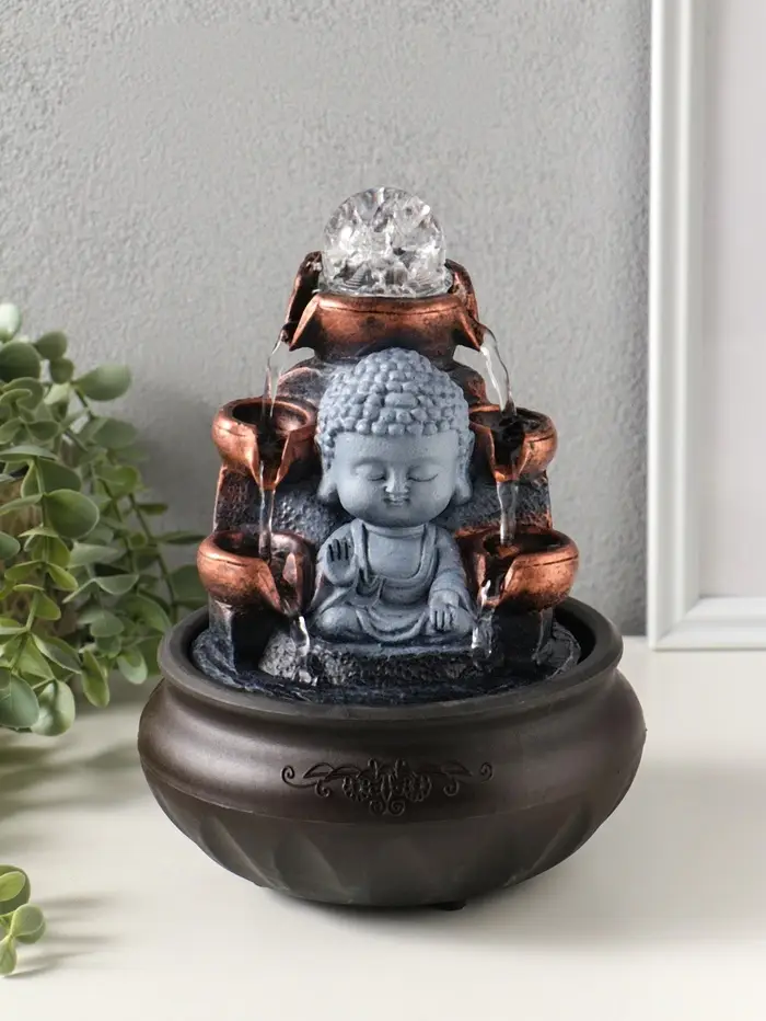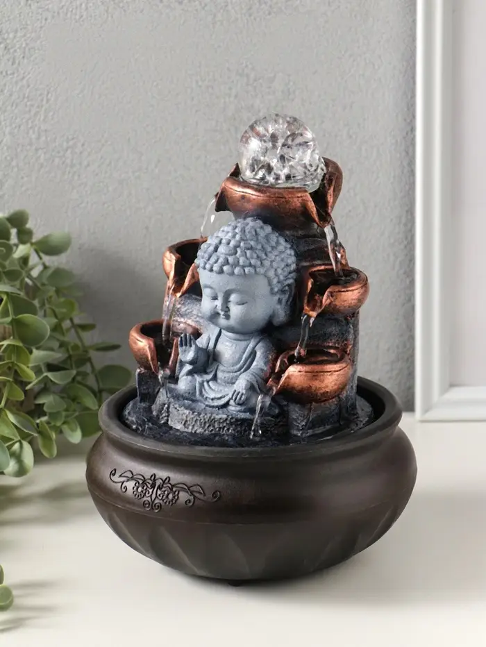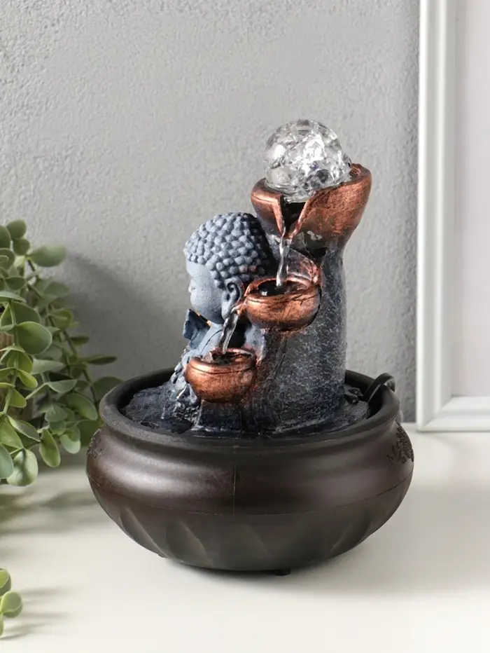 Фонтан настольный от сети, подсветка "Будда - мудра" 16х16х22 см
