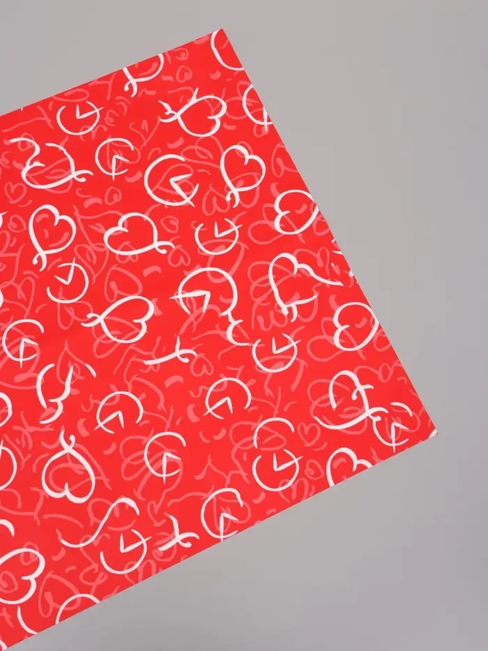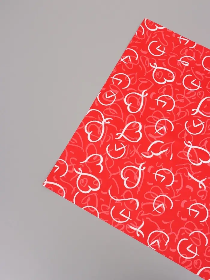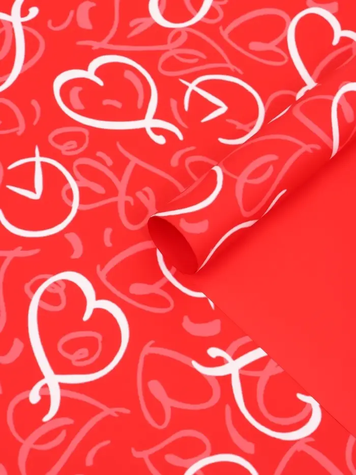 Пленка для цветов, "Сердца", красная, 57х57 см