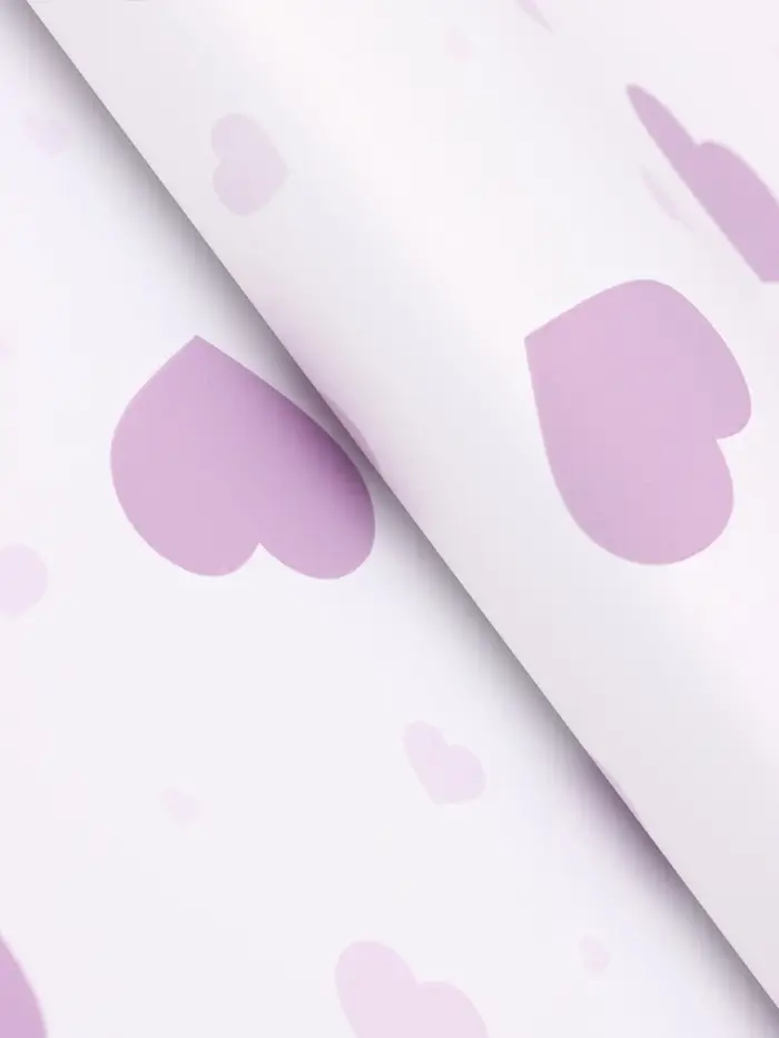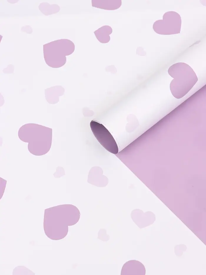 Пленка для цветов, "Сердца на белом", сиреневый, 57х57 см