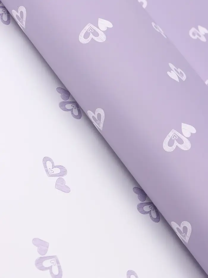 Пленка для цветов, "Двойные сердца", нежная сирень, 57х57 см