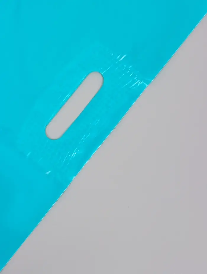 Пакет с вырубной усиленной ручкой ПВД, бирюзовый, 40×50 см, 45 мкм