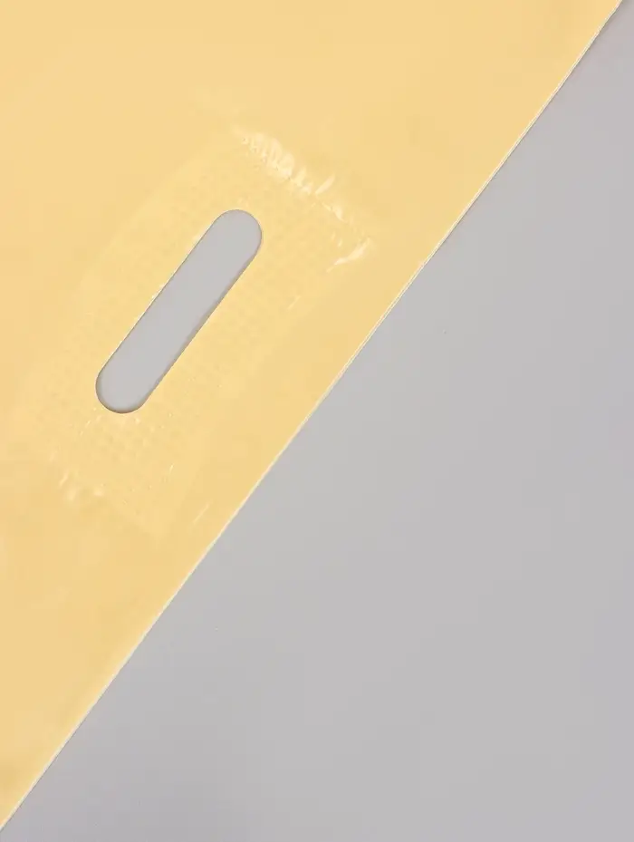 - Практичная и долговечная конструкция: Удобная вырубная ручка и отсутствие боковых складок делают пакет эргономичным и увеличивают его полезный объём. Это решение для многократного использования в качестве упаковки для переноски.