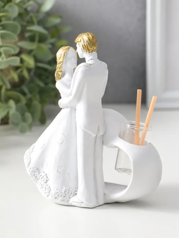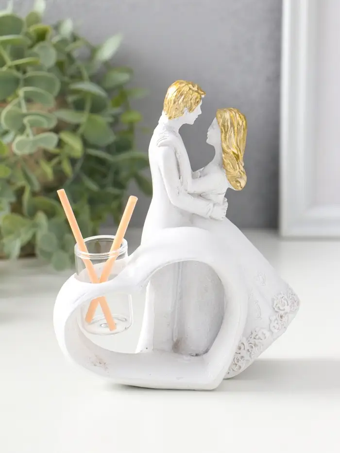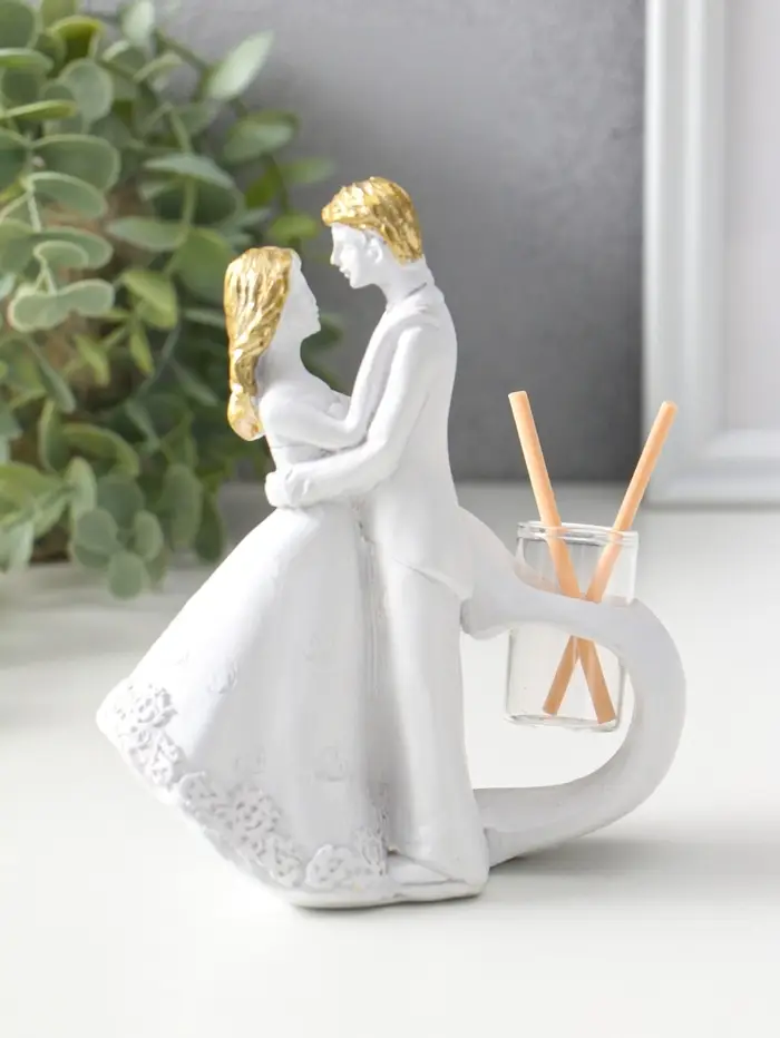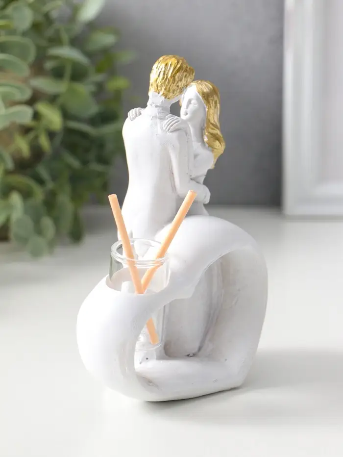 Аромадиффузор полистоун с палочками "Влюблённые у сердца" белый с золотом 6,5х12х14,2 см