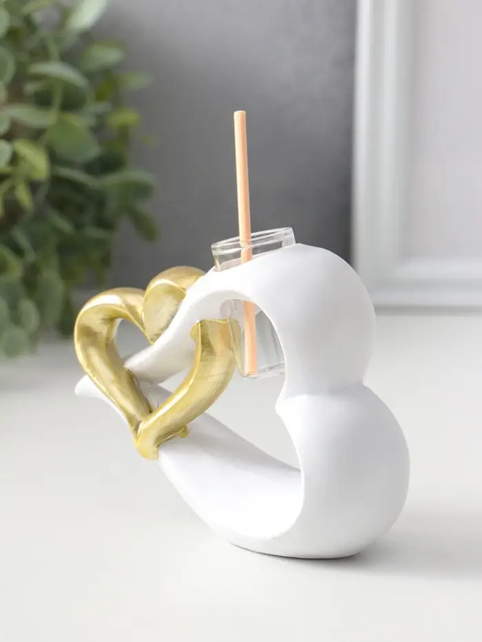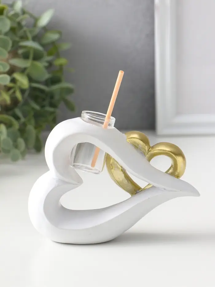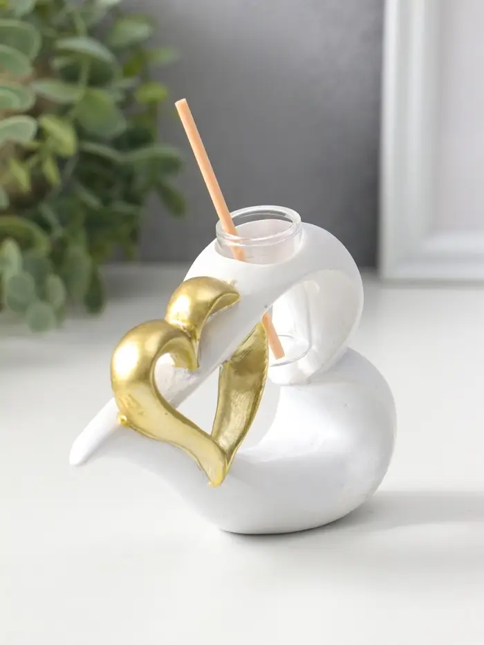 Аромадиффузор полистоун с палочками "Сплетённые сердца" белый с золотом 4,7х12,3х9 см