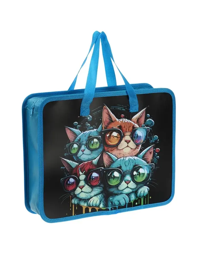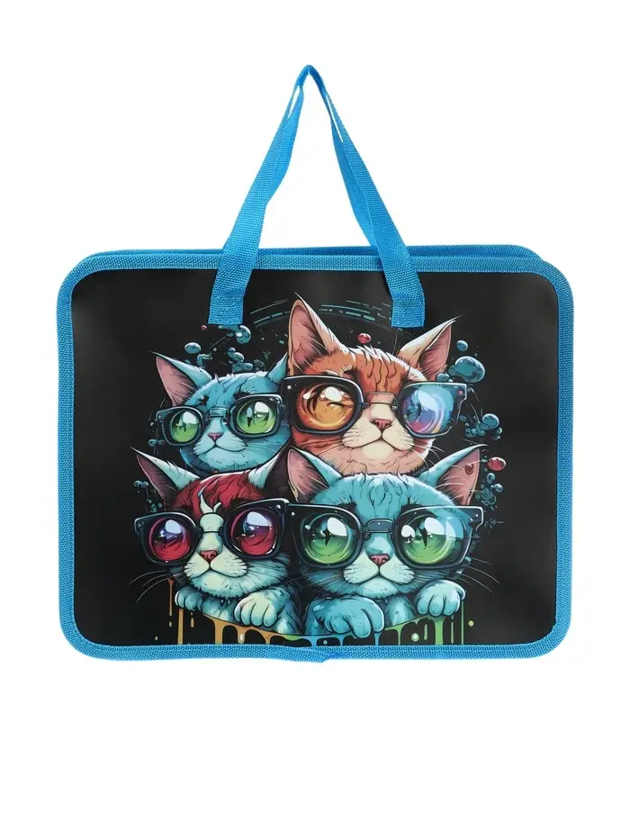 Папка с ручками «Котики», А4, пластиковая, 70 мм, 322×256 мм