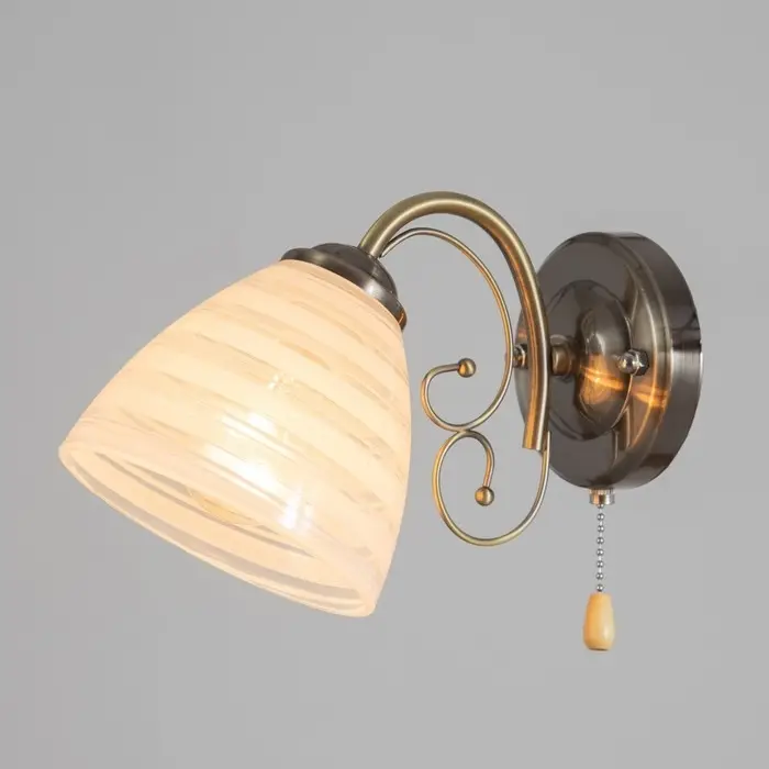 - Бронза и стекло в едином тоне: Металлическое основание в оттенке бронзы и матовый белый рассеиватель создают сбалансированный внешний вид. Такой светильник легко вписывается в классические и полуклассические интерьеры, не требуя дополнительных акцентов.