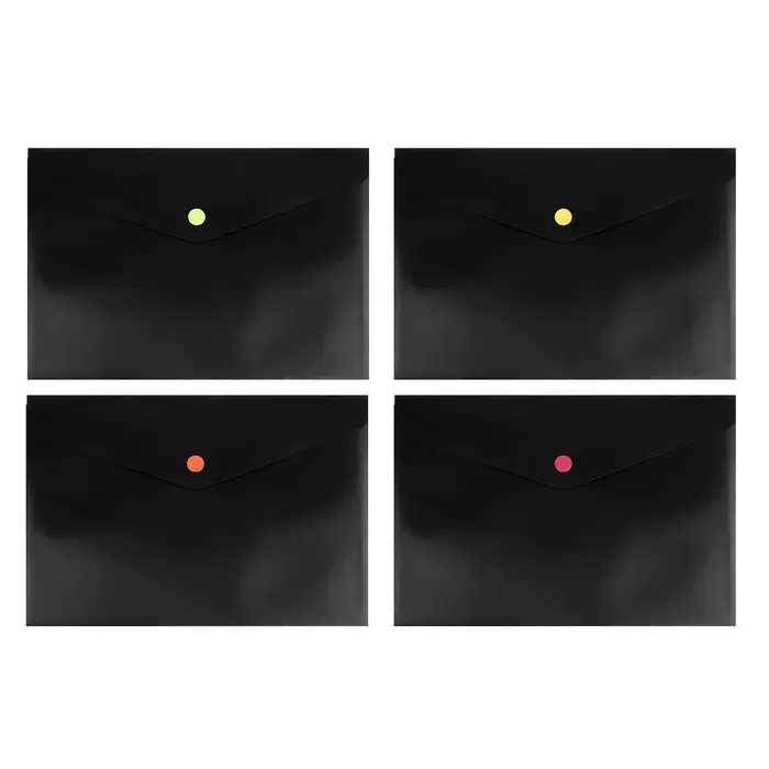 Папка-конверт на кнопке А5, 150 мкм, Calligrata No Secret, непрозрачная, черная, микс цветные кнопки