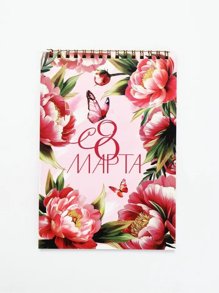 Блокнот А5, 40 листов на гребне "Розовые пионы"