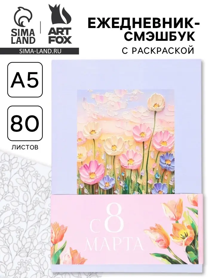 Ежедневник-Смэшбук раскраска антистресс А5, 80 листов «С 8 марта»