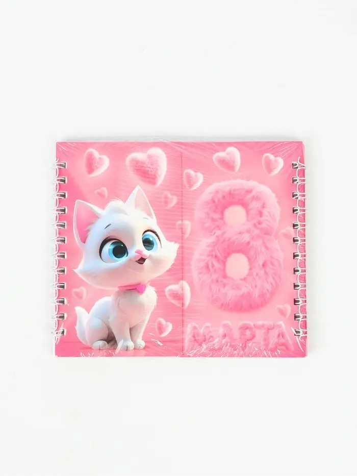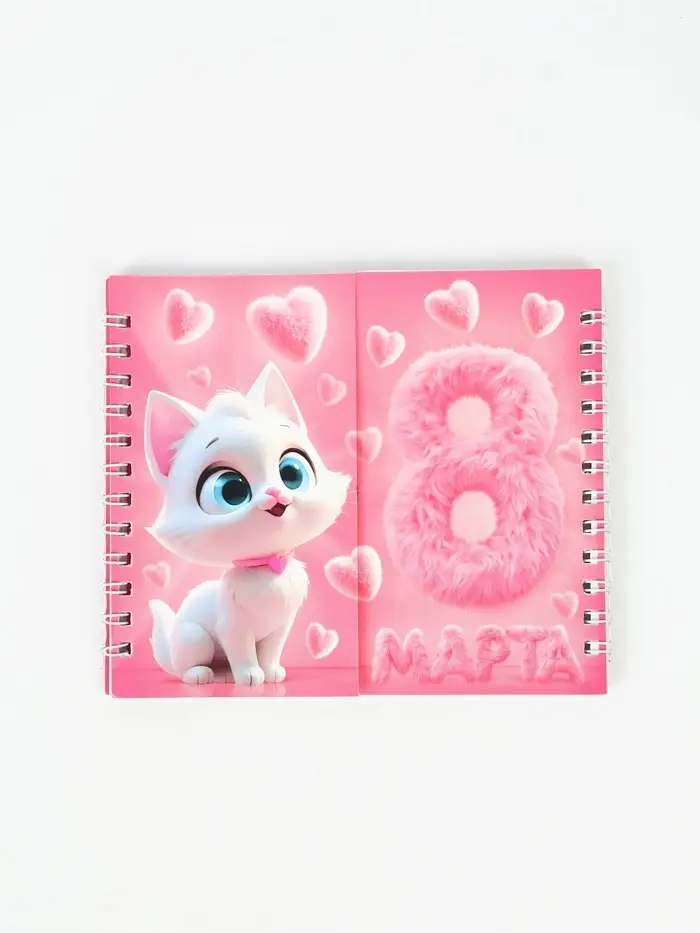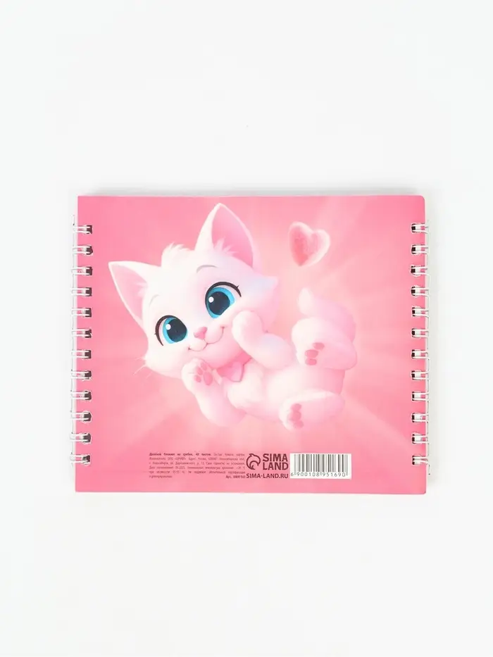 Двойной блокнот на гребне, мягкая обложка, размер 14,5 х12см, 48 л "Кошечка"