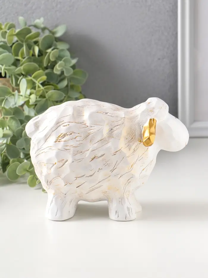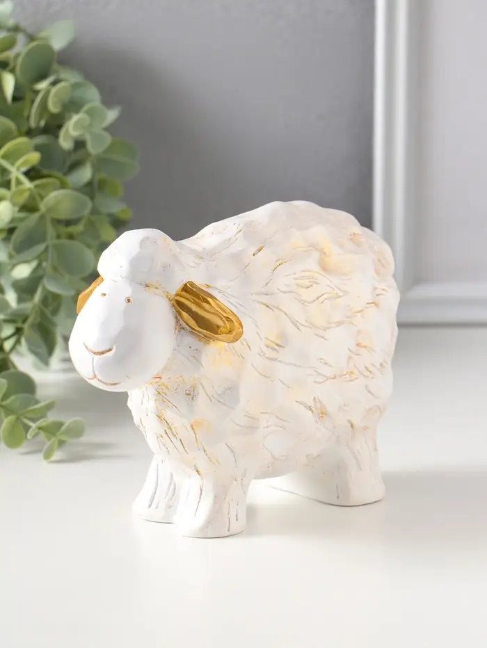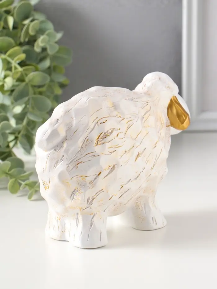 Сувенир полистоун "Бараш" белый с золотом 8х17,5х12,5 см