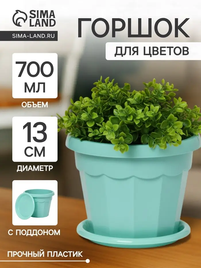 Горшок для цветов с поддоном Доляна «Эрика», 0,7 л, цвет бирюзовый