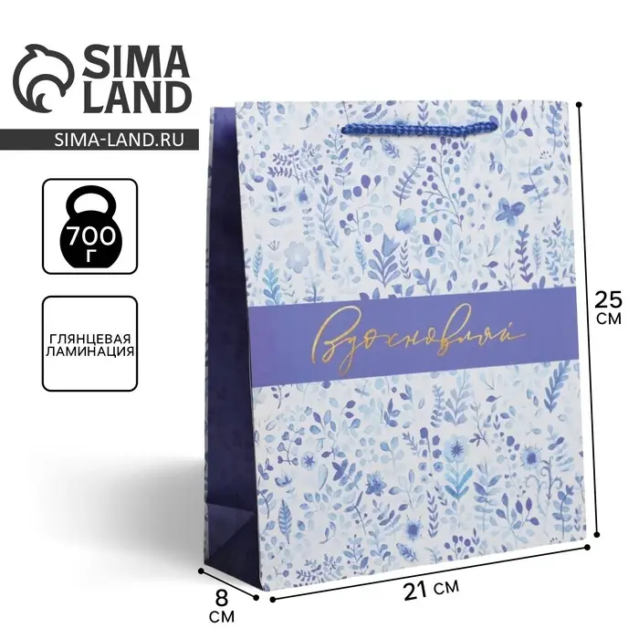 Пакет подарочный ламинированный, упаковка, «Вдохновляй», ML 21 х 25 х 8 см