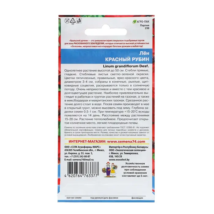 Семена Лен крупноцветковый Красный Одн Ц/П 0,5г