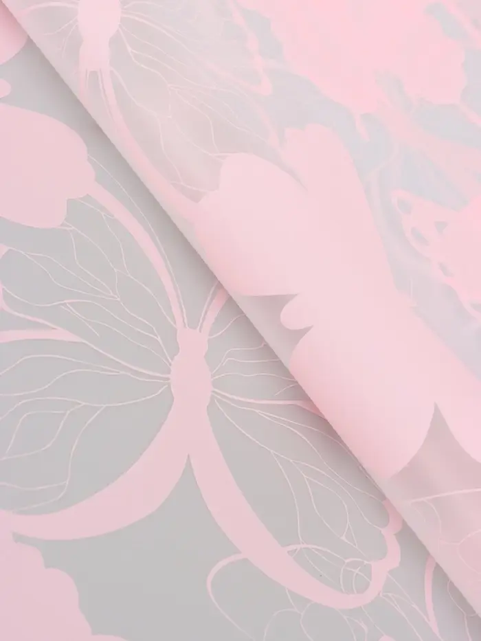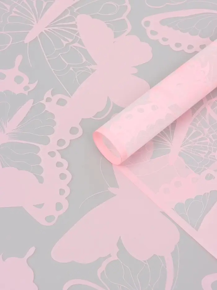 Пленка для цветов, "Бабочки", розовая, 57х57 см