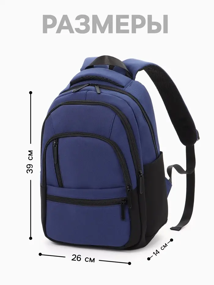 Рюкзак школьный, 2 отделения, 5 карманов, водонепроницаемое дно, 26×14×39 см, синий
