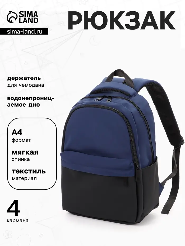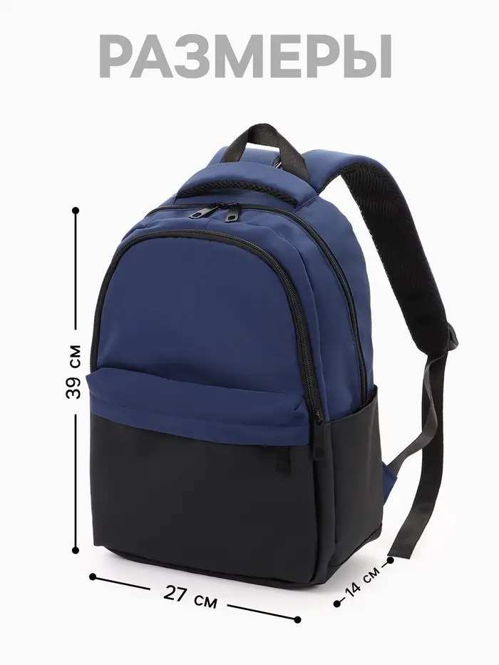Рюкзак городской, 2 отделения, 3 кармана, водонепроницаемое дно, 27×14×39 см, синий