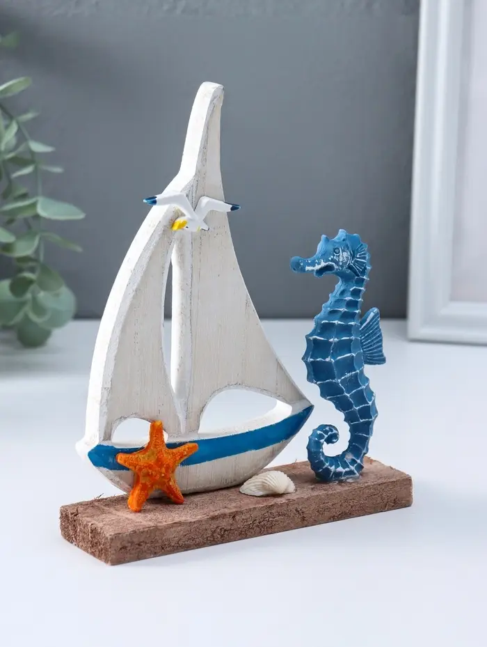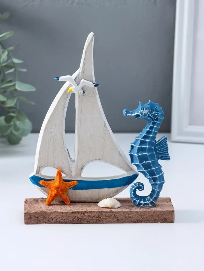 Сувенир интерьерный "Морской конёк и парусник" 4х14х17,5 см