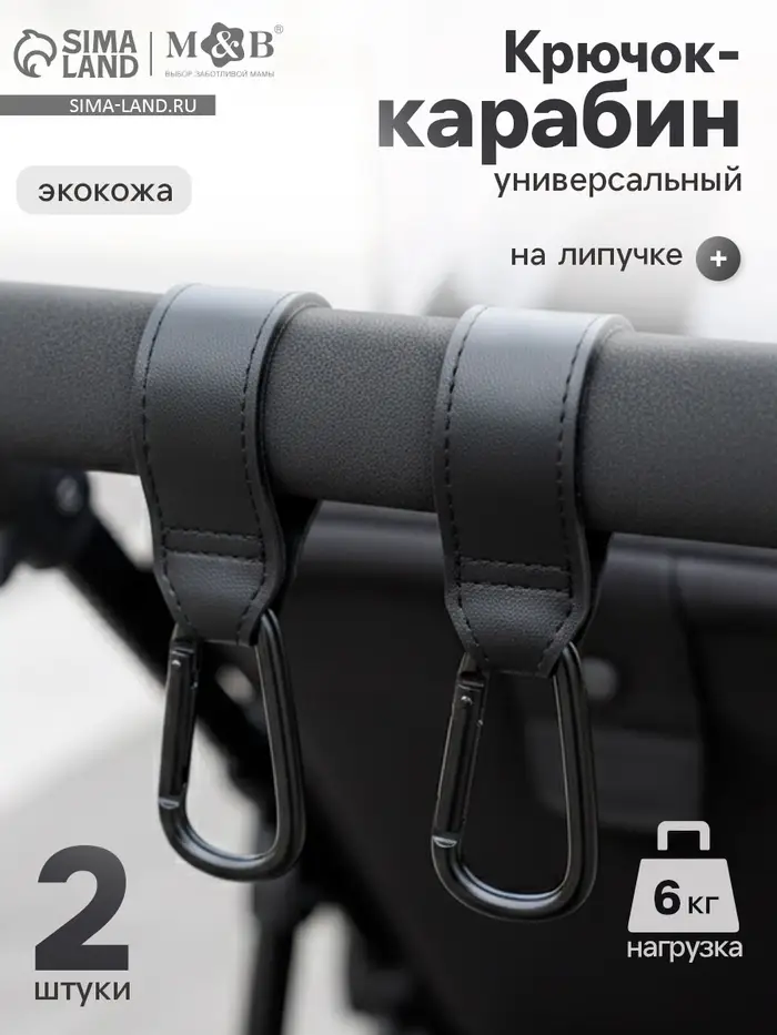 Крючок карабин для сумок на коляску, экокожа, 2 шт., Mum&Baby