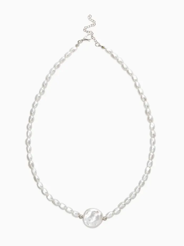 Колье жемчг "Барокко", цвет белый в серебре
