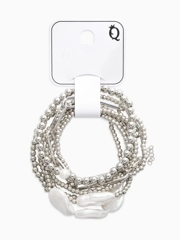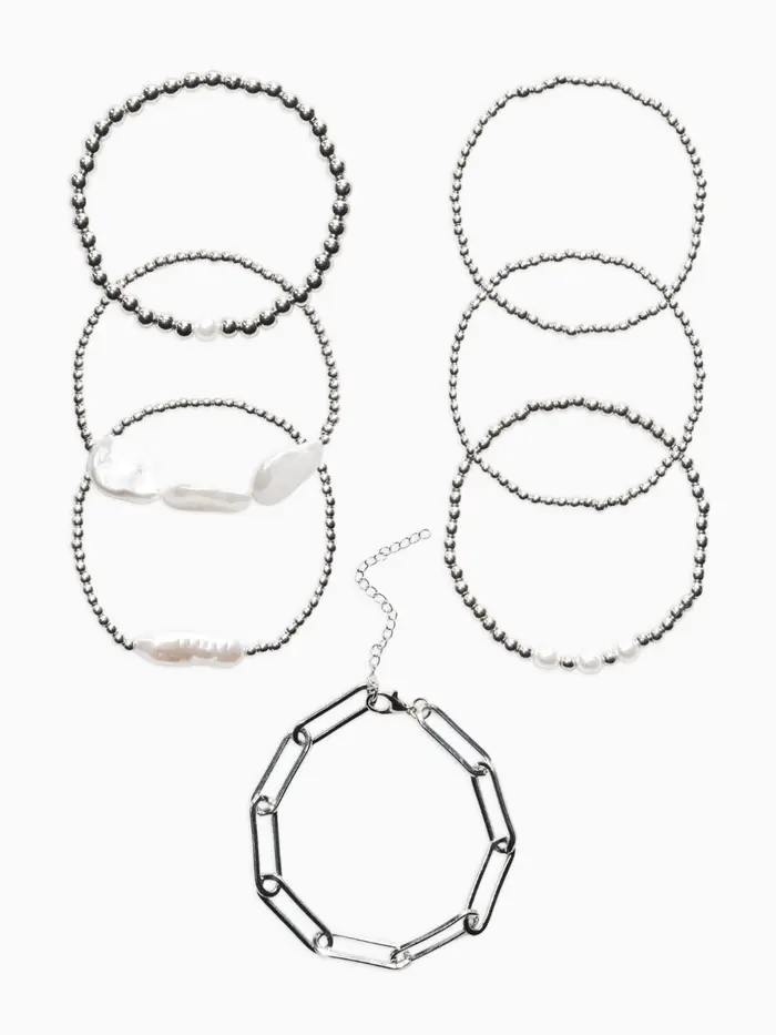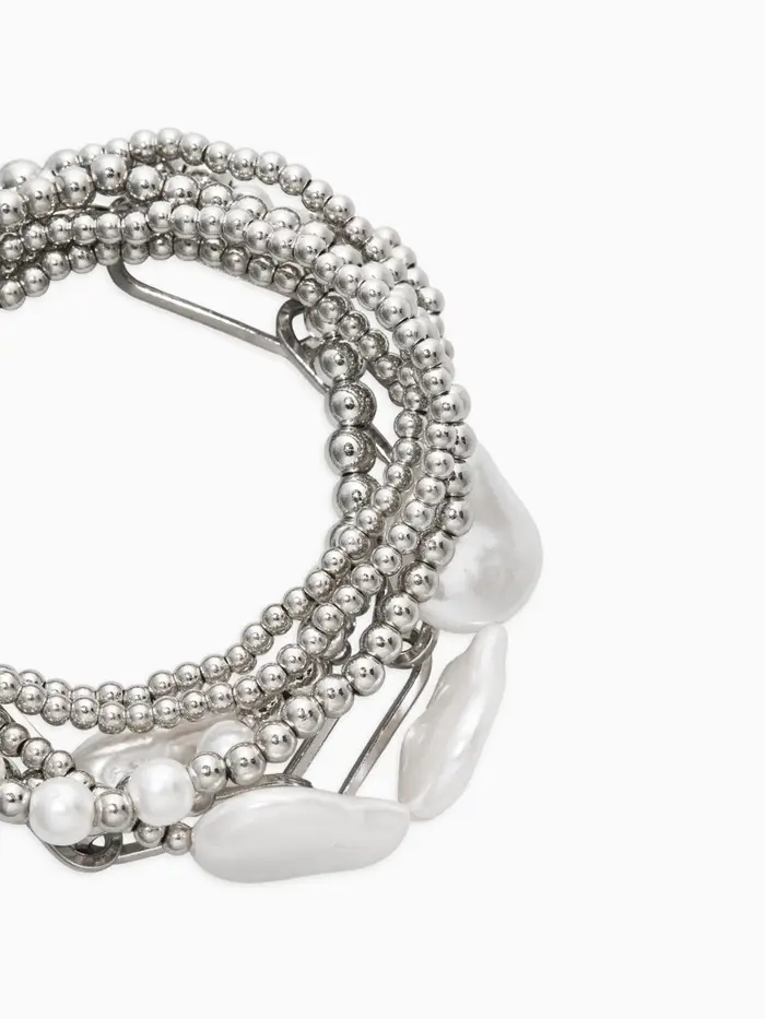 Браслет жемчуг "Барочный с цепями" (набор 7шт) , цвет белый в серебре