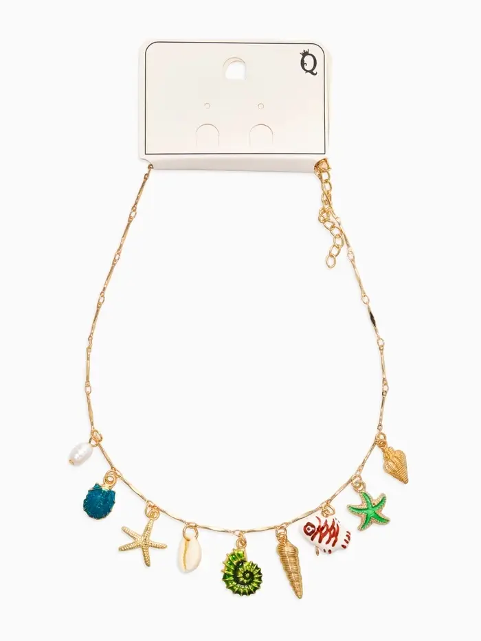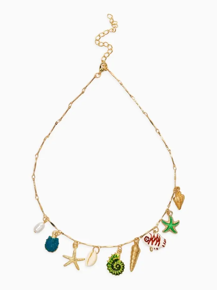 Колье "Летний вайб" морской мир, цветное в золоте
