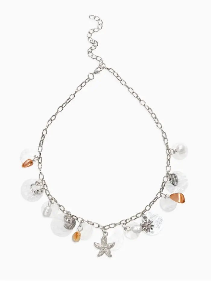 Колье "Летний вайб" ракушка, цвет белый в серебре