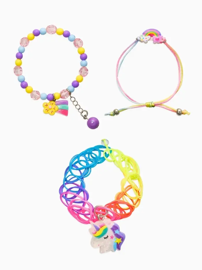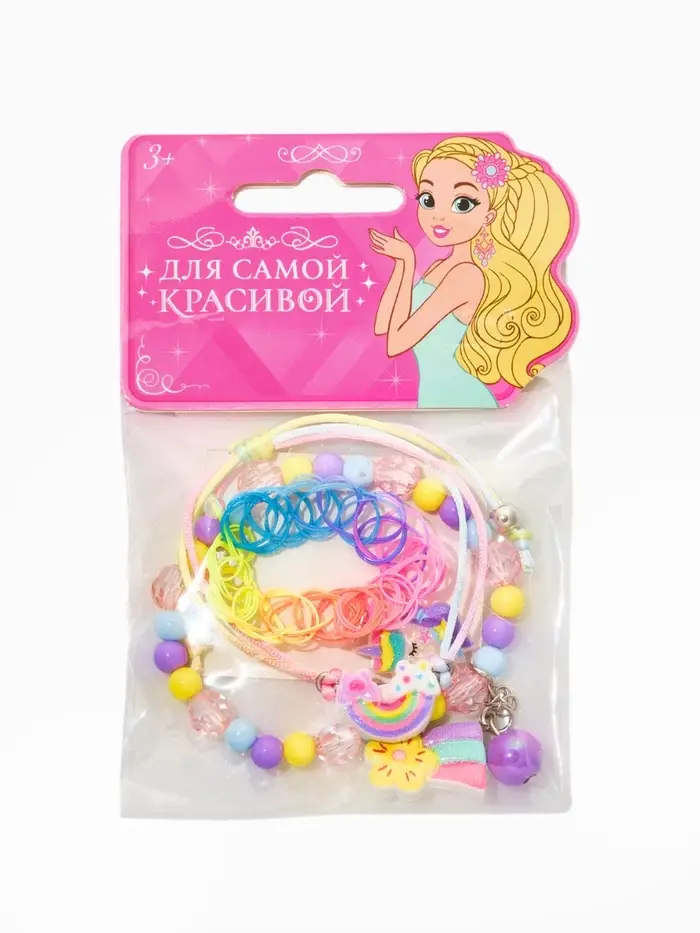 Браслет детский набор 3 шт. "Выбражулька" радуга, подвеска с бусиной, разноцветный