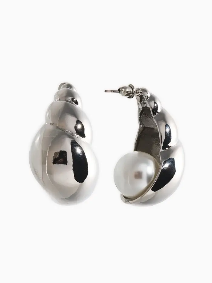 Серьги "Морской мир", улитка, цвет белый в серебре