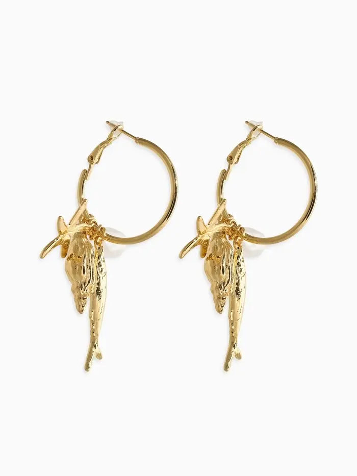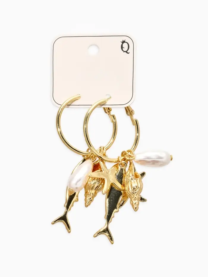 Серьги "Морской мир", с подвесками, цвет белый в золоте