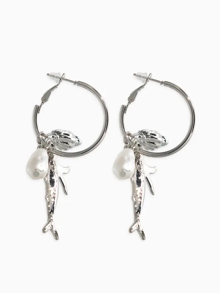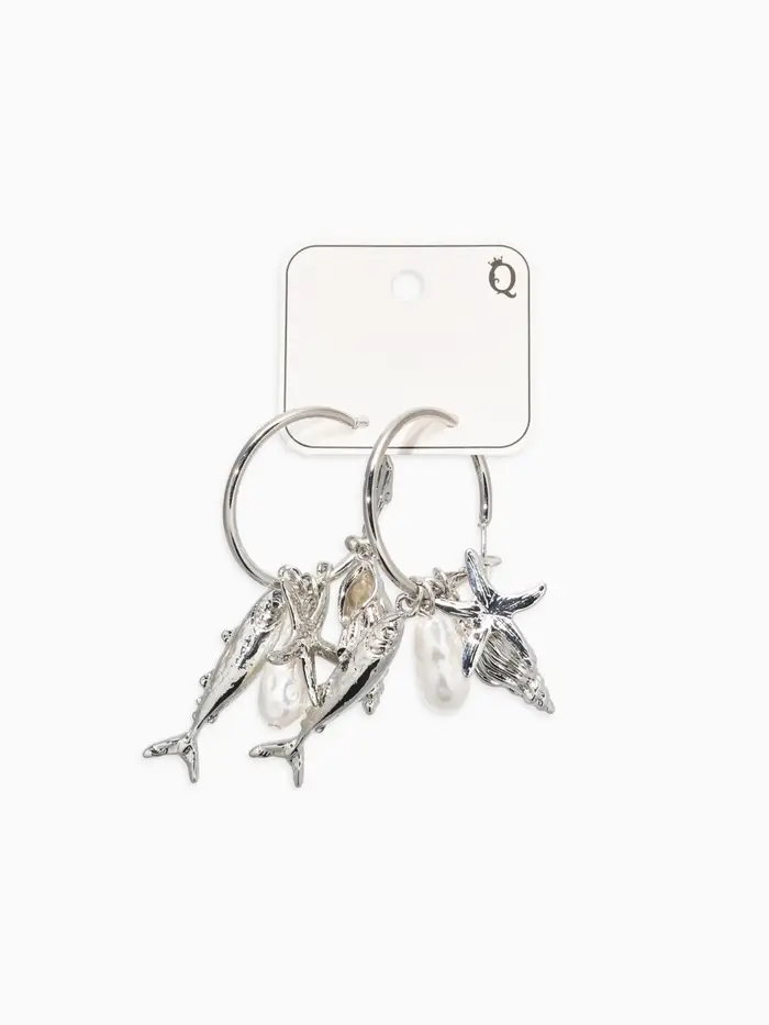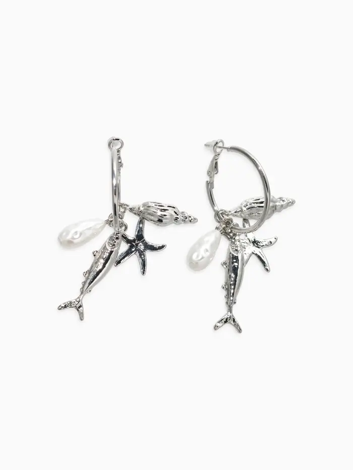 Серьги "Морской мир", с подвесками, цвет белый в серебре